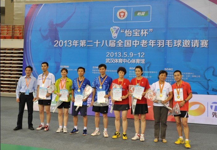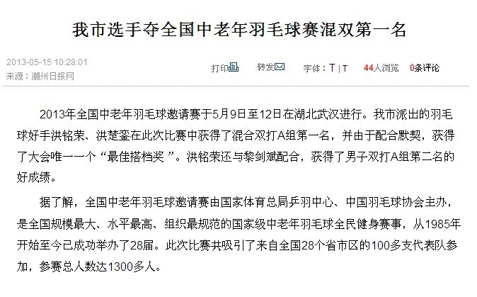 红星球馆选手洪铭荣、洪楚銮夺全国中老年羽毛球赛混双第一名