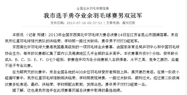 红星球馆选手洪铭荣勇夺2013全国东西南北中总决赛男双冠军!